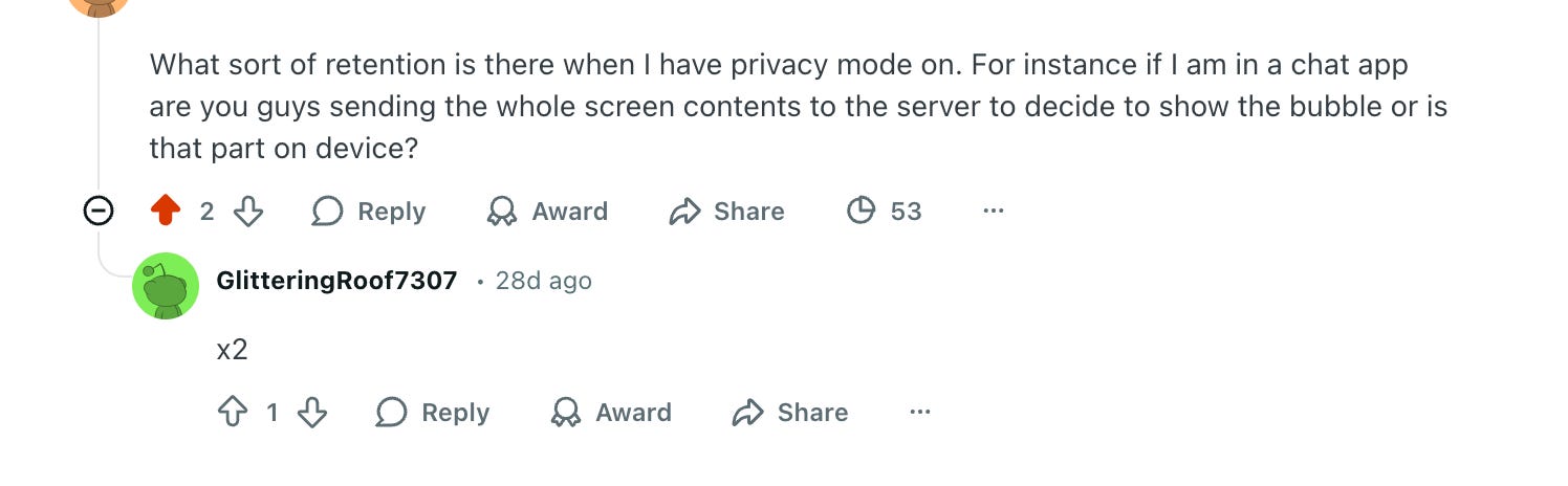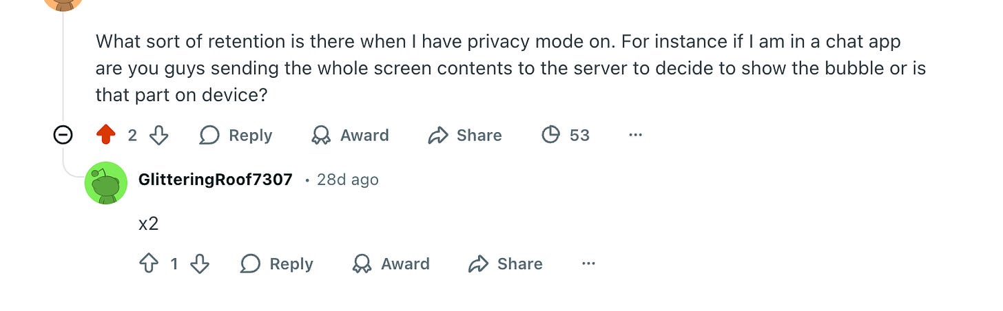 I asked about the Privacy Mode feature in their official subreddit: