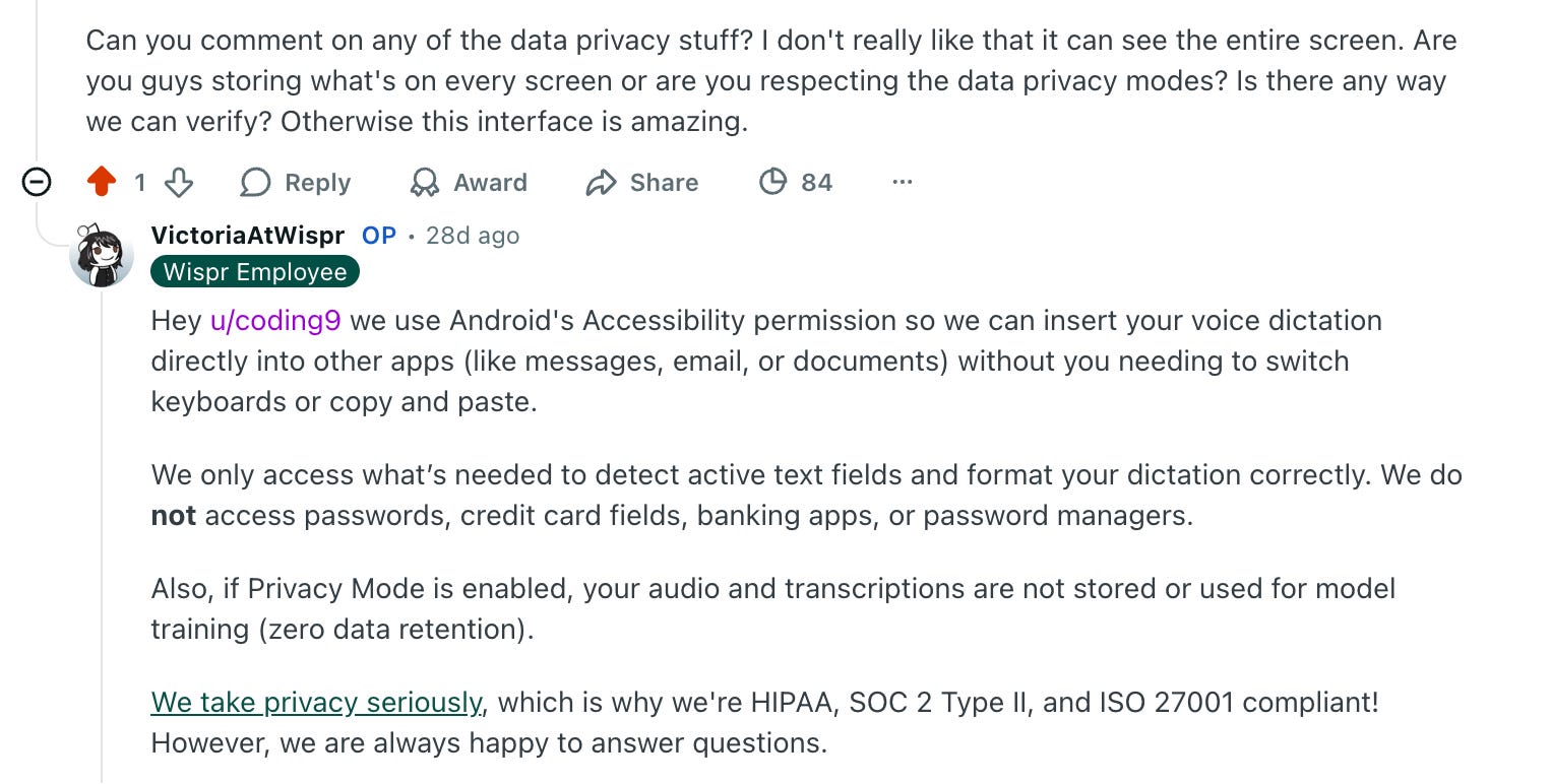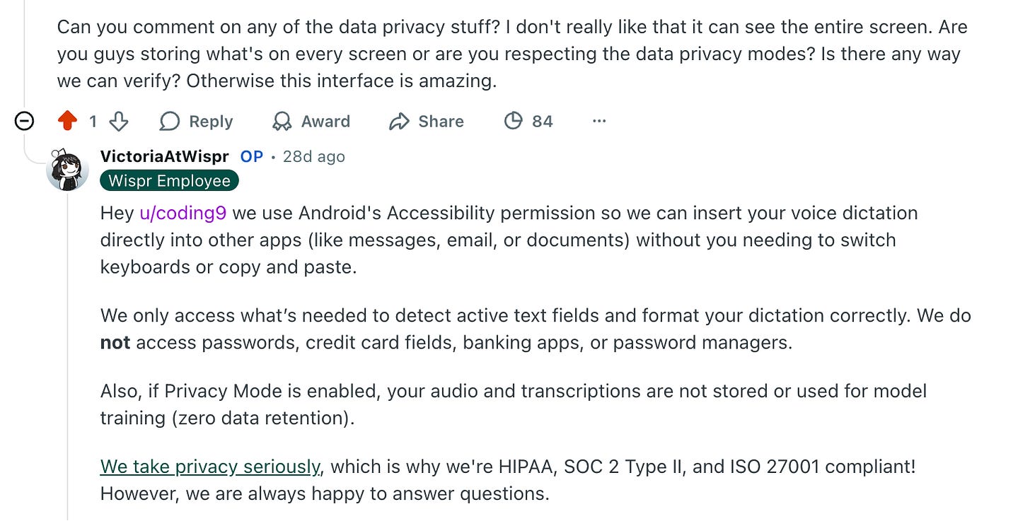 I’ve been using voice ink on my Mac for months over Wispr, because it works more than good enough for the types of ways I use it, without any AI processing on top of the transcription.